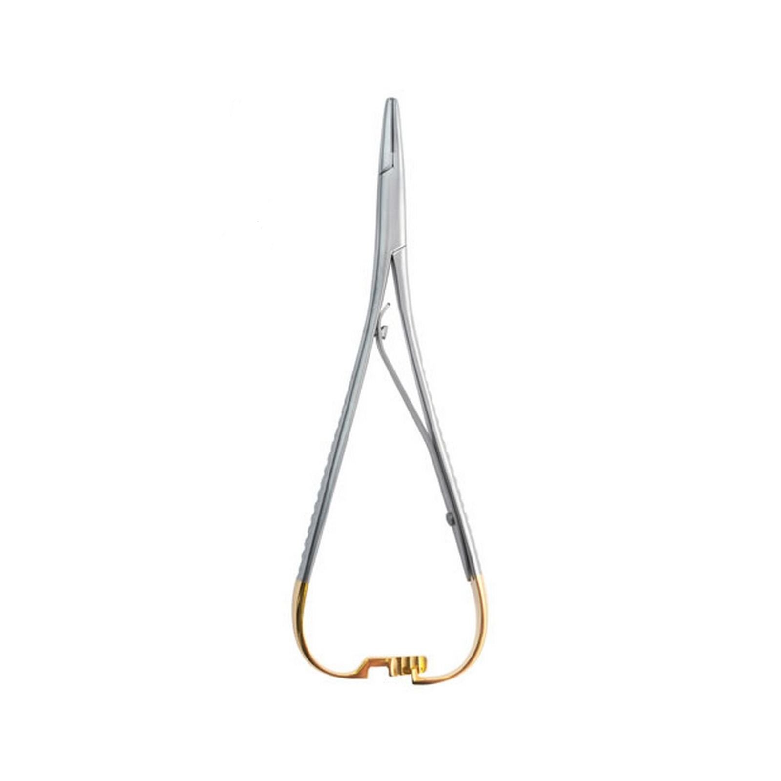 Mathieu Needle Holder is a surgical instrument used to hold suturing needles securely during stitching procedures. It features a spring-handle design for quick, one-handed use and is made of stainless steel for durability and easy sterilization.